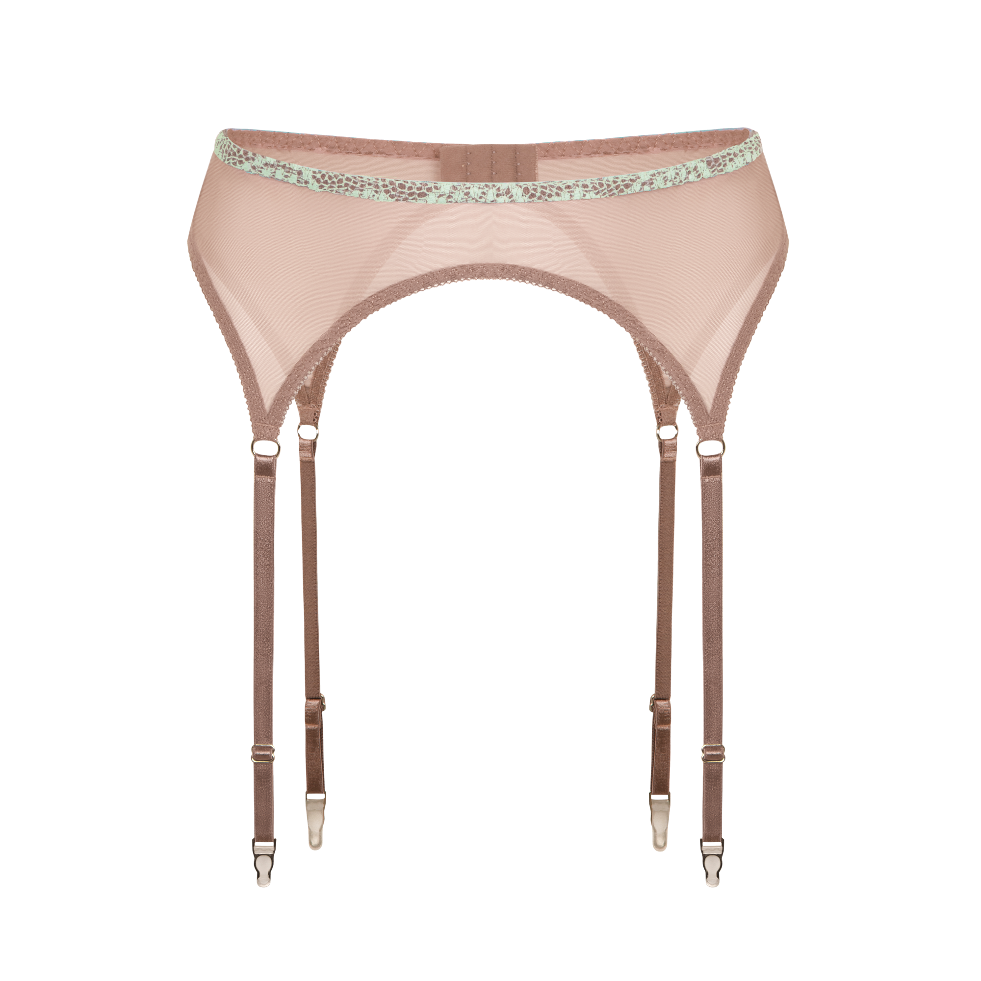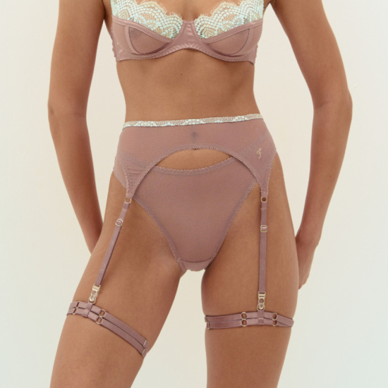The sophisticated Coachella Mint Belt is crafted from mesh, pastel lace and high quality detailing. Complete the look with the Coachella Mint Bra, Briefs and Garters.
